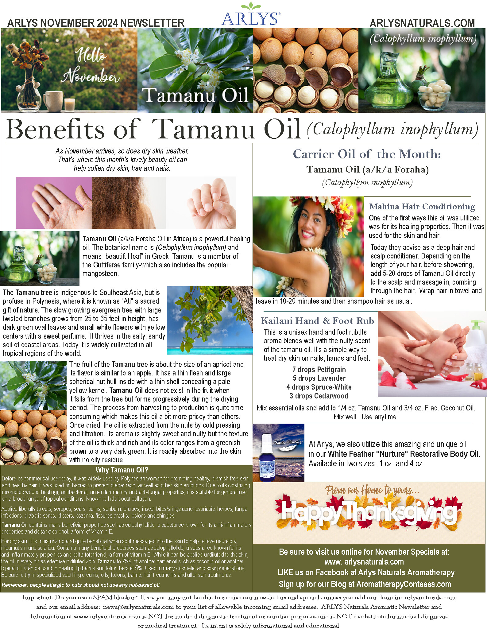 Arlys Naturals November 2024 Newsletter-Tamanu Oil